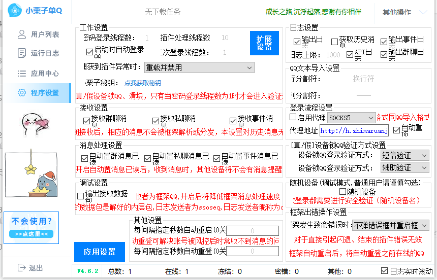 小栗子机器人提供众多其他框架没有的功能,提供全方面的消息类型解析,同时内核采用较新的手Q协议保证其稳定运行